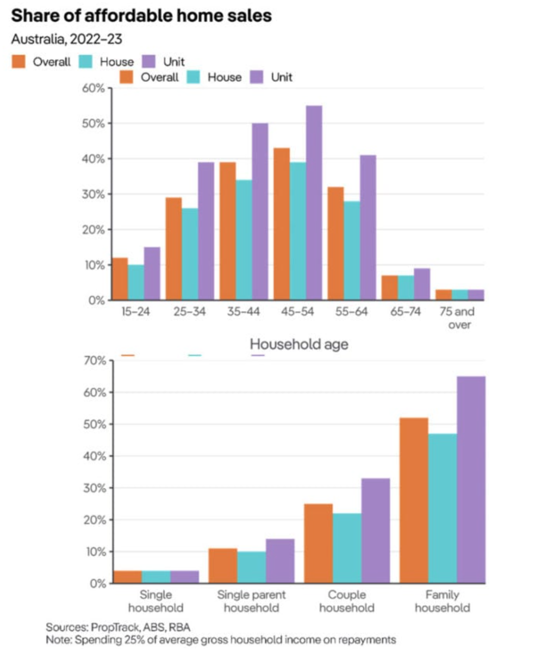 Affordability is very stretched for younger households - an average 25-34-year-old household could afford fewer than 30% of homes sold in 2022-23.