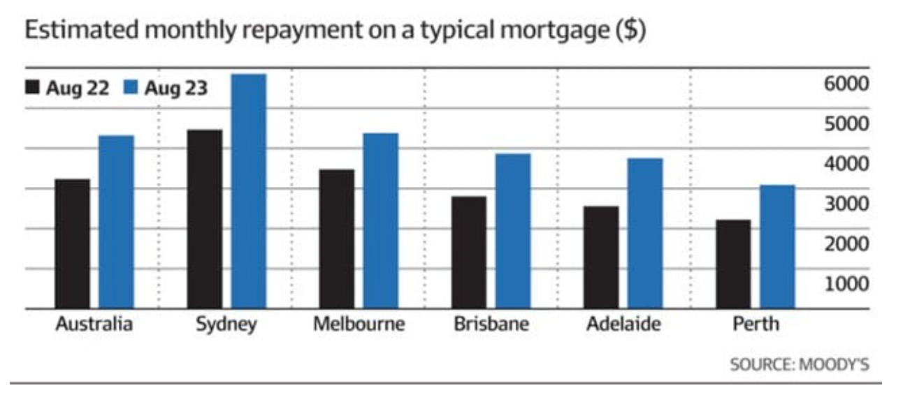 Mortgage repayments have surged since last May when the Reserve Bank began hiking interest rates from a rock bottom of 0.1% to the 4.1% kept on hold for October.