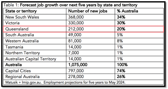 As a result of this massive growth, from 2019 out to May 2024, around 1 in 5 new jobs being breated have been forecast to be in Queensland.