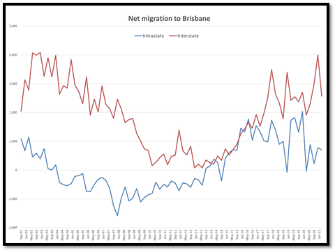 While all forms of migration to Brisbane have been strong, it is interstate migration leading the way.