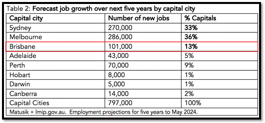 Of those forecast 212,000 jobs for Queensland, around half of these are forecast for Brisbane.