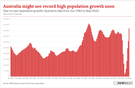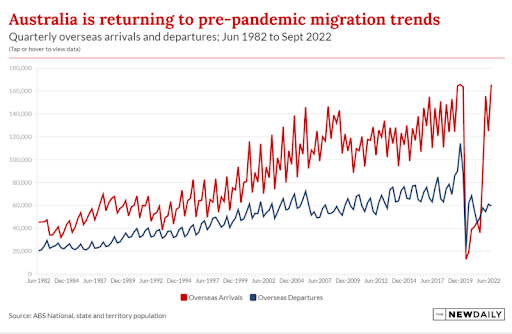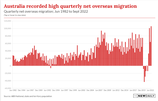 This significant growth can be attributed to a record-high net overseas migration intake in September, largely due to the pent-up demand following the COVID-19 pandemic.