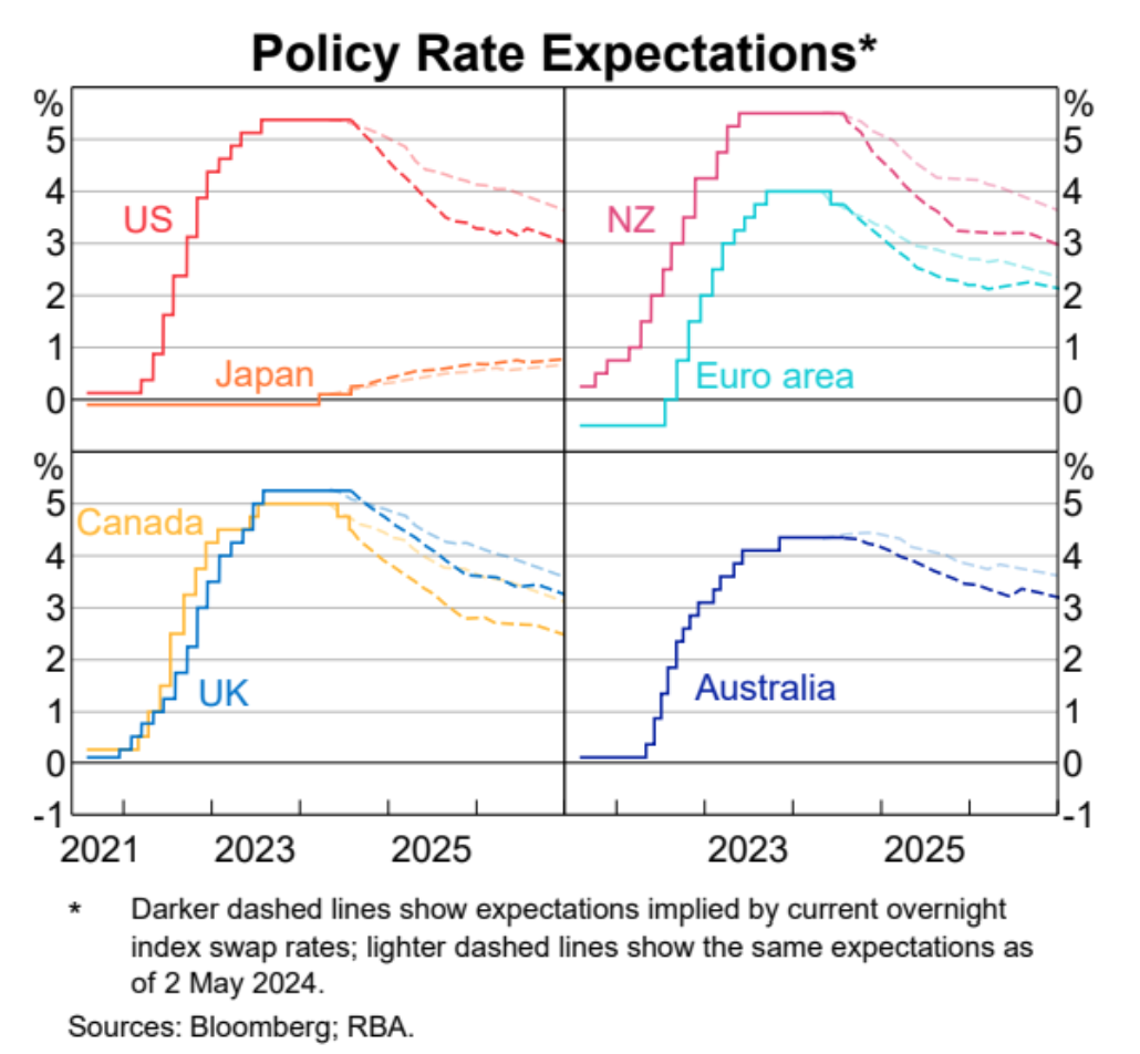 Figure 2. Policy Rate Expectations, RBA August 2024 Statement of Monetary Policy