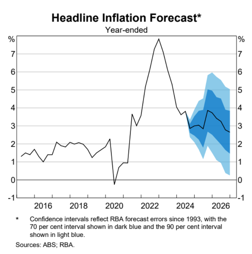 Figure 1. Headline Inflation Forecast, RBA August 2024 Statement of Monetary Policy
