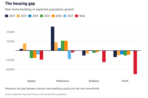 Perth is expected to experience the most significant shortfall, with a predicted shortage of 25,200 dwellings.