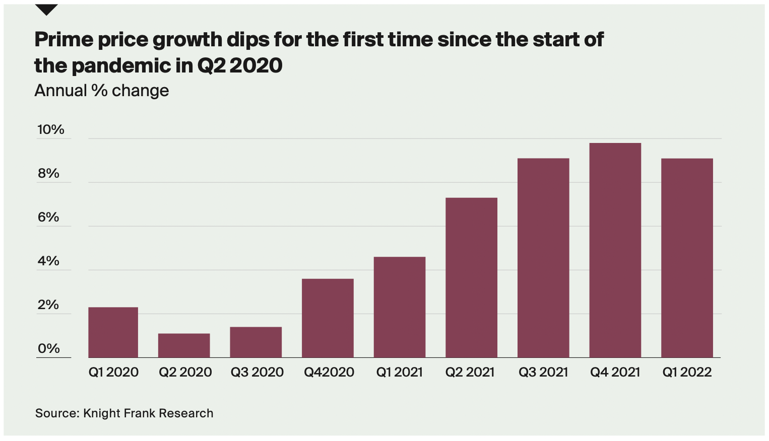 Despite robust price growth across multiple markets in the past 12 months, Knight Frank’s report also reveals that overall quarter-on-quarter prime price growth cooled for the first time since the start of the pandemic, although on average prime cities continue to register 9% annual growth.