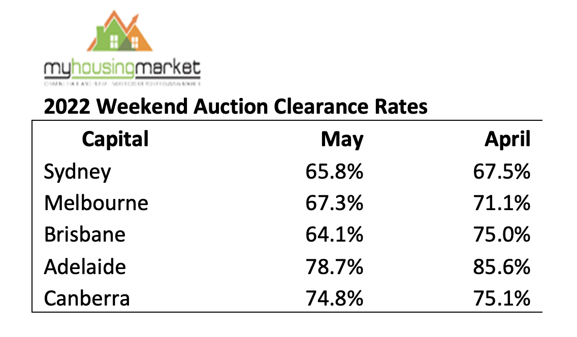 “All capital city auction markets reported lower clearance rates over May compared to April, but clearance rates continue well above 60%, indicating the continuation of sellers’ markets generally.”