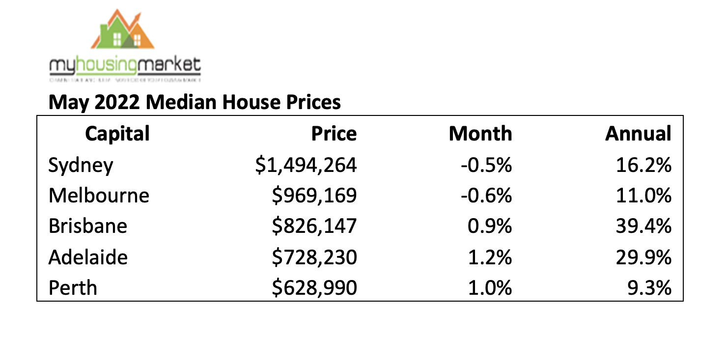 While up to now the capital city housing markets have held their own, the latest data from My Housing Market reveals that Sydney and Melbourne house prices fell over May with the booming results of 2021 clearly a thing of the past.