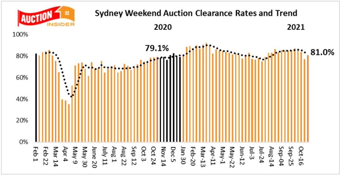 Sydney recorded a clearance rate of 81% of the weekend which was higher than the previous week and 77% and above the 79.1% recorded over the same weekend last year.