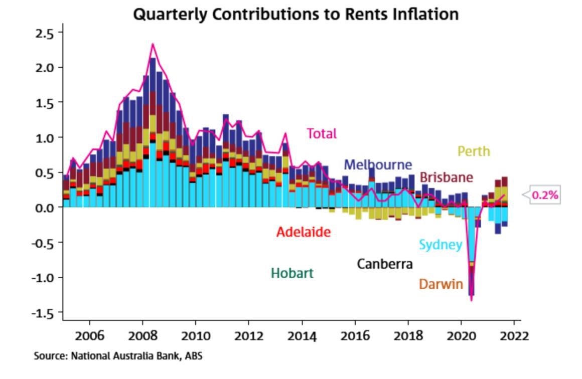 While the major contributors to headline inflation in the quarter were new dwelling construction and automotive fuel, rising rents were one of the contributors to higher inflation.