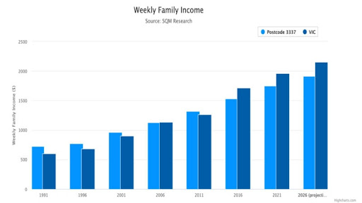 Here is the type of location we look for, as you can see the weekly family income in this suburb is growing much faster than the state average.