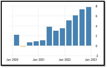 We have seen inflation climb rapidly over the last few years as it now approaches 8%.