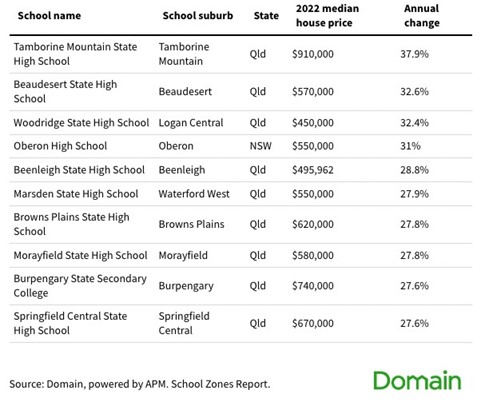 In regional areas, 46% of primary and 100% of secondary school catchment zones outpaced their suburb counterparts in terms of price growth.