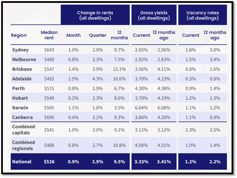 These rental gains have fuelled the overall rental yield, which increased to its most robust quarterly reading since 2019.