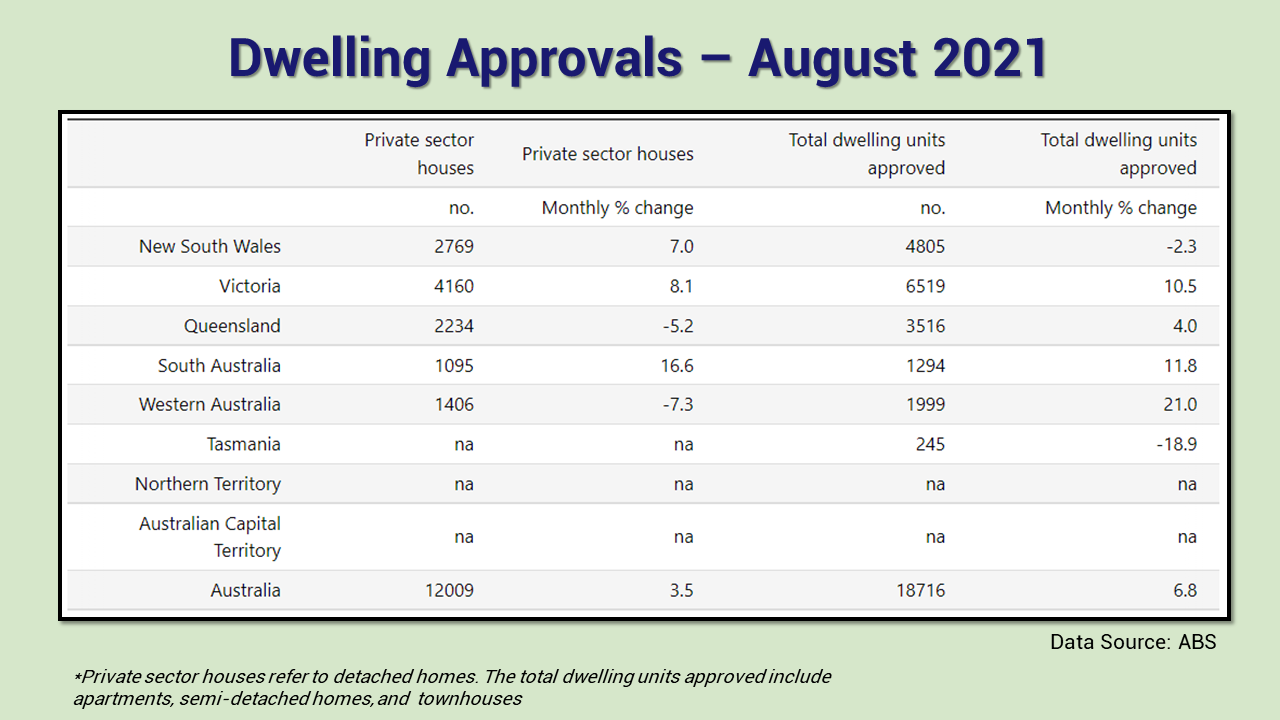 "The August result indicates that approvals for detached housing remain strong despite the unwinding of stimulus measures in April and the on-going lockdowns in New South Wales and Victoria," Mr Rossi said.
