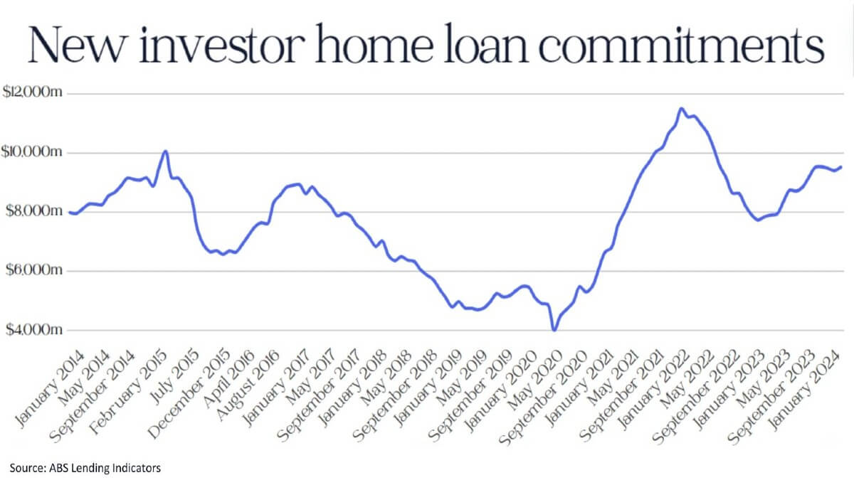 Australian Bureau of Statistics data on new home loan commitments for February highlights a marked year-on-year increase in investor participation in the market - up nearly 22%.