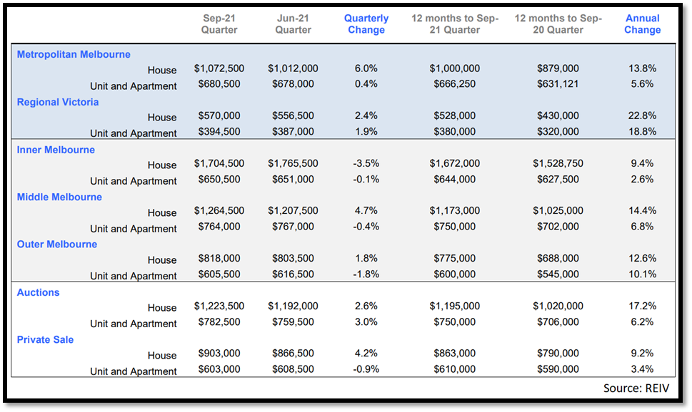 Figures from the Real Estate Institute of Victoria (REIV) showed annual gains of 28.8% for houses and 18.8% for units in regional Victoria during the period.
